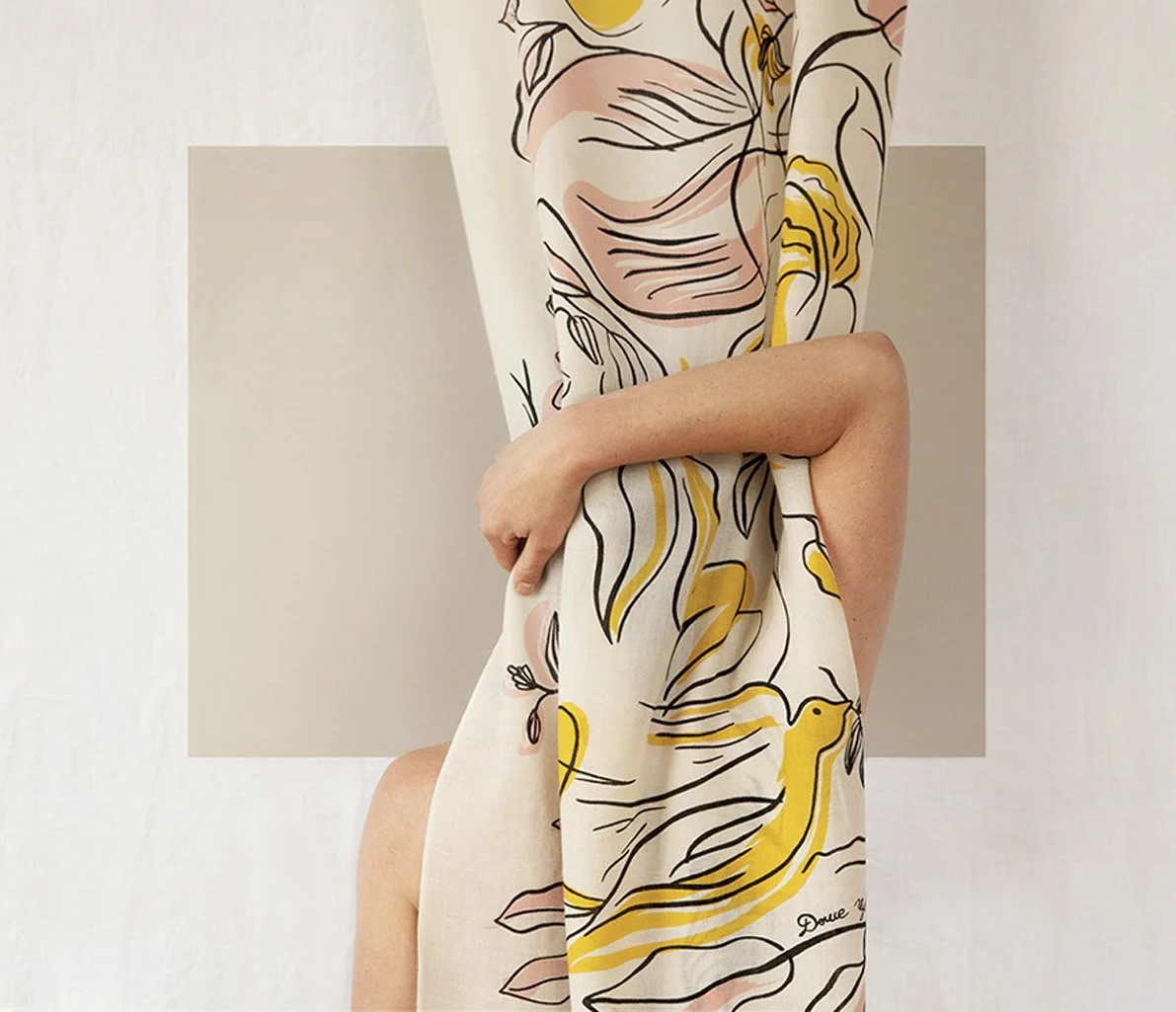 Conception et suivi de production de la collection printemps/été SS18 d'étoles en cachemire et soie pour la marque Douce Gloire en duo avec Béatrice De Crécy.